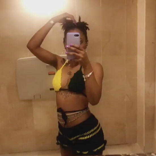 Comes with an elastic band able to stretch 2 inches passed waist length for comfort. Snug fit, unique design. Model shown is wearing size medium, in Spice Isle.