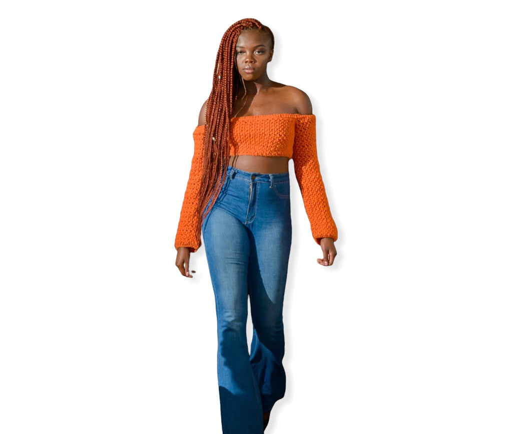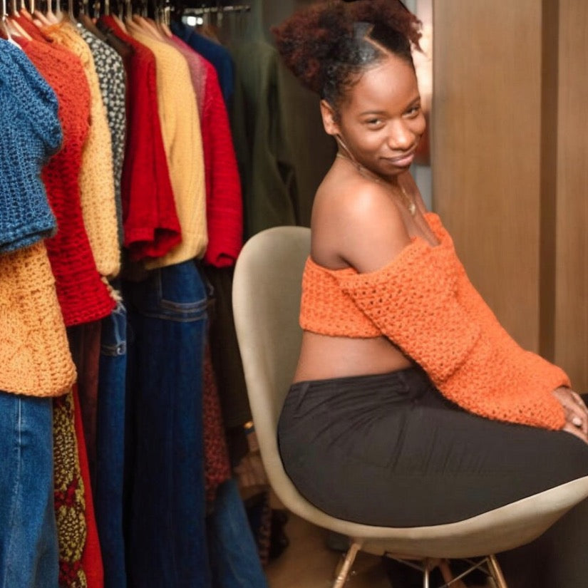 Off the shoulder cropped sweater with vintage sleeves. Machine or hand wash, tumble dry. For custom orders please send an email to zurinationbyakima@gmail.com