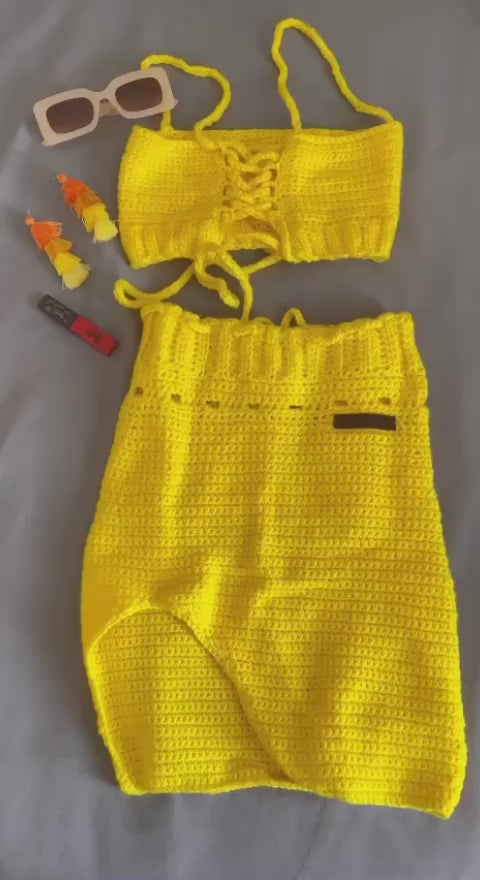 The Kiki Set (Midi) features, 2-Piece Midi Skirt and Crop Top Set as accentuating silhouettes are re-imagined with curve shaping designs exploring the concept of fashion as a means of self-expression for every shape - every body. Hand crafted from delicate yarns with intricate stitches in each seem to beautifully shape the person wearing the garment. Features an elastic ribbed waistband with leather Zuri logo that completes the skirt.